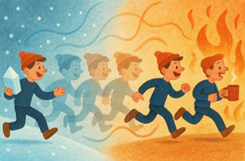 조금 더 깊은 수준에서, 이런 현상은 '무질서도(엔트로피)' 개념과 연결되어 있습니다. 열역학 제2법칙에 따르면 물질의 상이 변해 무질서도가 증가할 때 물질은 주변의 열을 흡수합니다. 앞선 예시도 알코올이 액체 상태로 모여있는 것보단 기체 상태로 떠돌아다니는 것이 더 무질서하기에 상 변화 과정에서 주변의 열을 흡수한다고 볼 수 있습니다. 만약 이런 자연 현상을 응용해 물체의 상을 변환하는 장치를 만든다면, 주변의 온도를 마음대로 낮추고 높일 수 있을 것입니다.