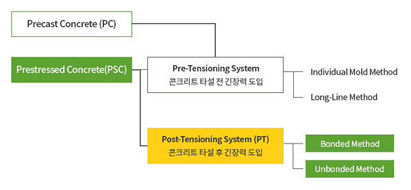 이러한 콘크리트의 인장력 한계를 보완하기 위해 개발된 것이 PSC(Prestressed concrete)입니다. PSC는 미리 콘크리트 내부에 강선과 같은 인장재를 넣어 힘을 주는 기법입니다. 포스트텐션(Post-tension)은 PSC 기법의 한 종류로, 콘크리트가 굳은 후 내부에 배치된 강선을 긴장시켜서 압축력을 가해 강도와 내구성을 높이는 기술입니다. 강현구 교수님께서는 이 분야에서 세계 최고 수준의 연구를 진행하시며, 최근에는 스마트 포스트텐션 기술을 개발하여, 건물의 안정성이 작업자의 숙련도에 의존하지 않도록 가해지는 힘을 실시간으로 모니터링하고 관리할 수 있는 혁신적인 시스템을 구축하고 계십니다.