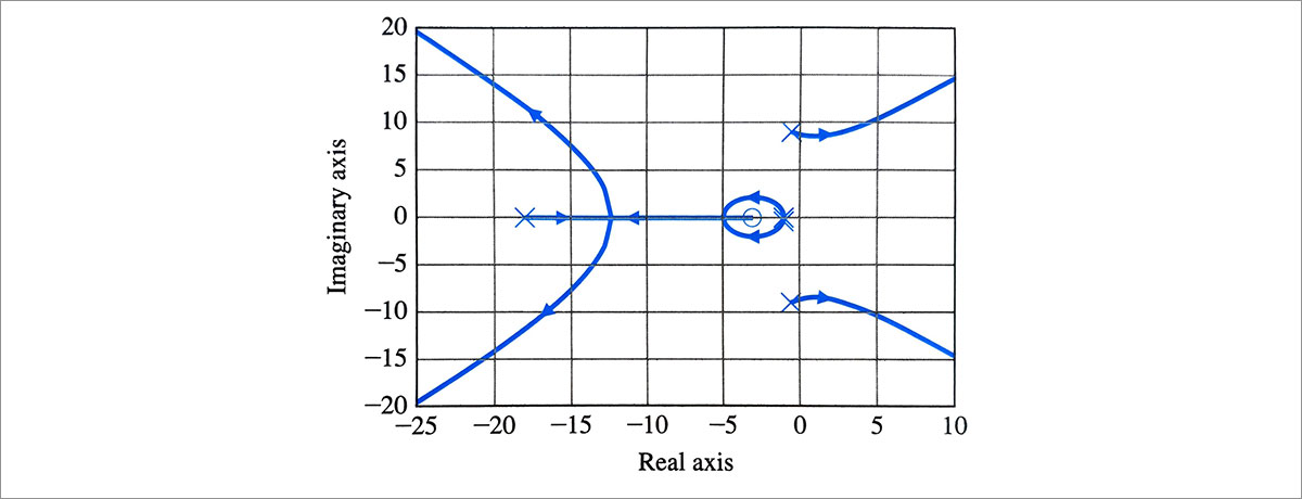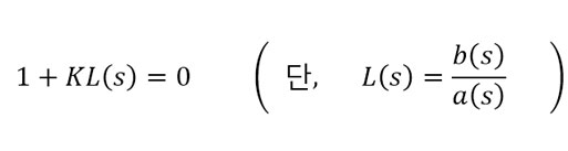 따라서 (9)와 같은 ‘특성방정식’을 사용하게 됩니다. 앞서 살펴본 ‘전달함수’를 기억하시나요? 전달함수 L(s)가 주어졌을 때, 파라미터 K 값의 변화에 따라 모든 가능한 근을 다음 예시와 같이 그릴 수 있습니다.