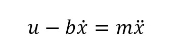 첫 번째로 동적 시스템 모델링에 대해 살펴볼까요? 동적 시스템 모델링을 통해, 우리는 여러 가지 물리 시스템을 수학적으로 설명할 수 있습니다. 예컨대 일정한 힘 u를 갖는 엔진이 달린 자동차를 생각해봅시다. 공기저항 계수를 b라고 할 때, 자동차의 운동방정식은 (엔진의 힘)+(공기저항)=(합력) 이므로 (1)과 같이 쓸 수 있습니다.3