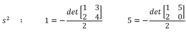 비슷하게, s1을 구하기 위해 s2의 첫 번째 항 1을 확인해줍니다. 이번에는 s3와 s2의 값들로 이루어진 행렬식을 분자에 두고 계산합니다.