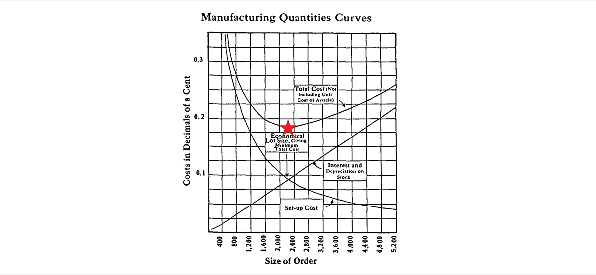 - Harris, Ford W.. “How Many Parts to Make at Once.” Oper. Res. 38 (1990): 947-950./