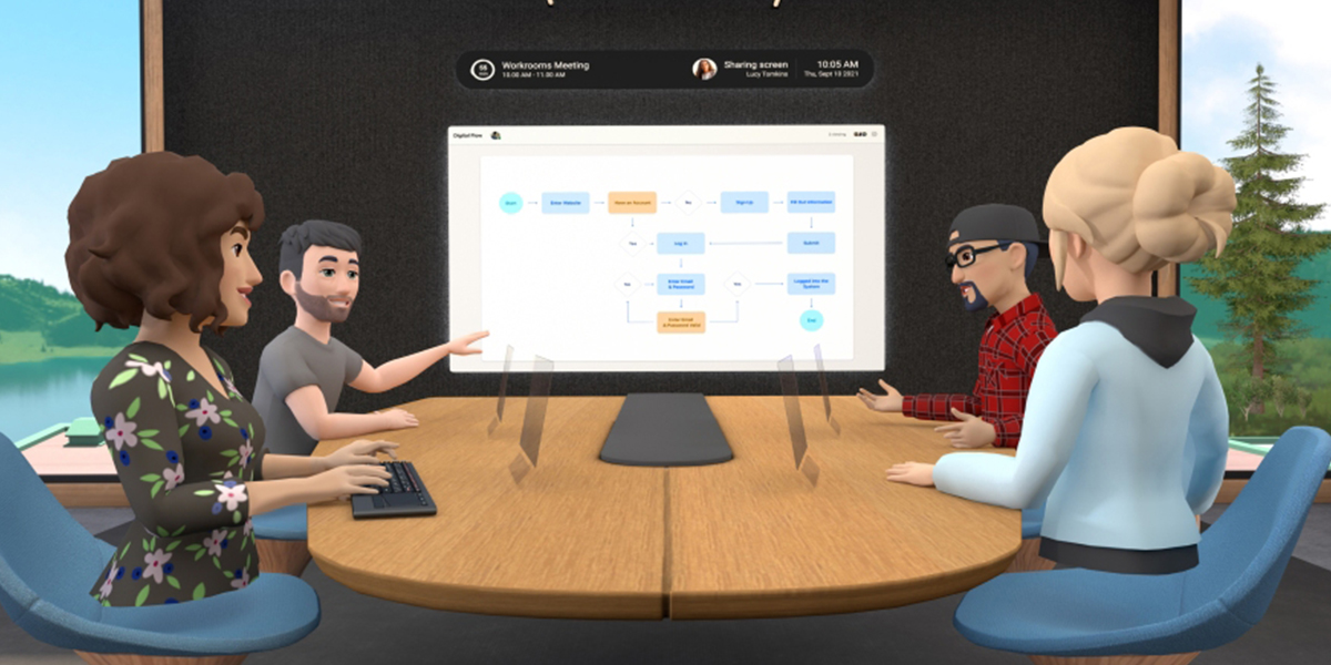 그림 2. 가상의 업무 공간에서 아바타로 회의를 진행하는 모습 (출처 : meta, https://about.facebook.com/ko/meta/)