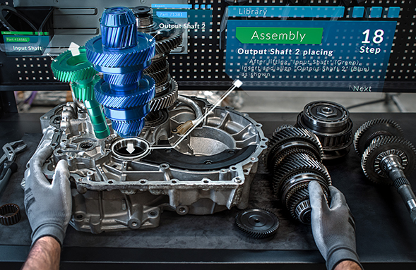 그림 4. 혼합현실을 통해 부품을 조립하는 모습 (출처 : Magic Leap, https://www.magicleap.com/en-us)