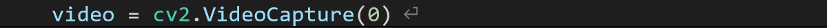 다음으로 함수가 동작하면서 사용하게 될 데이터를 저장할 변수를 설정해 줍니다. 앞으로 우리는 카메라에서 받아 온 정보를 계속해서 사용해야 하므로, 정보를 video라는 이름의 변수에 저장해서 변수의 이름을 데이터로 불러오는 용도로 사용하는 것이지요. 이때 OpenCV 라이브러리의 VideoCapture라는 메서드2를 사용해서 카메라에서 전송되는 정보를 video라는 변수에 바로 할당하면 간편하게 변수를 선언할 수 있습니다. video 변수에 cv2 라이브러리의 VideoCapture 메서드를 호출해 할당하고, 이때의 동작 유형은 0으로 설정합니다.