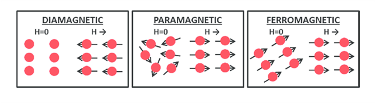 그림 2. https://www.researchgate.net/figure/Schematic-representation-of-diamagnetic-paramagnetic-and-ferromagnetic-materials_fig1_304614864