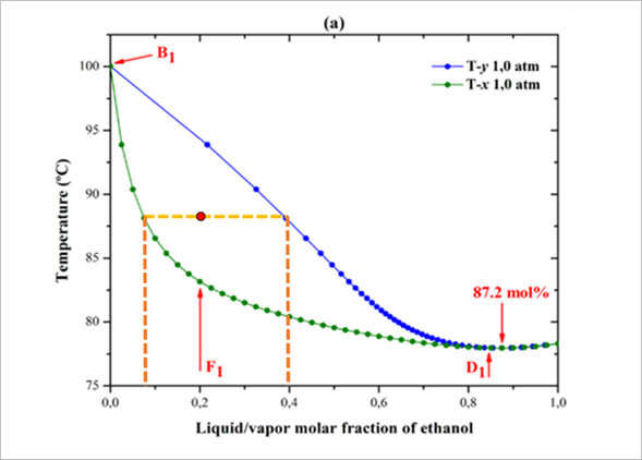 그림 2,3 https://www.researchgate.net/figure/T-xy-diagrams-of-the-ethanol-water-system-Azeotropes-in-a-10atm-and-in-b-10atm_fig2_334523794