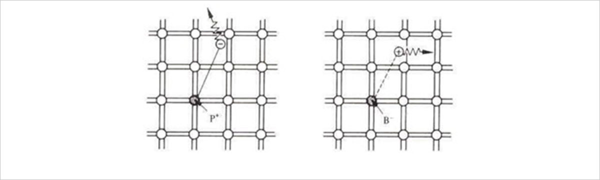 그림 3. N형 반도체(왼쪽)와 P형 반도체(오른쪽)