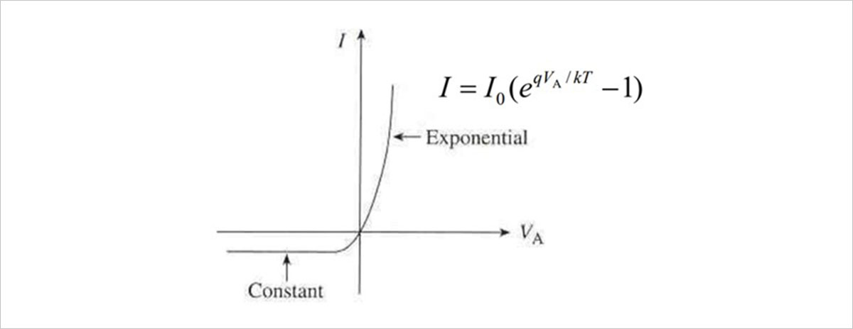 그림 8. 다이오드 방정식과 그래프 (I0는 비례 상수, VA는 외부 전압, k는 볼츠만 상수, T는 절대온도)