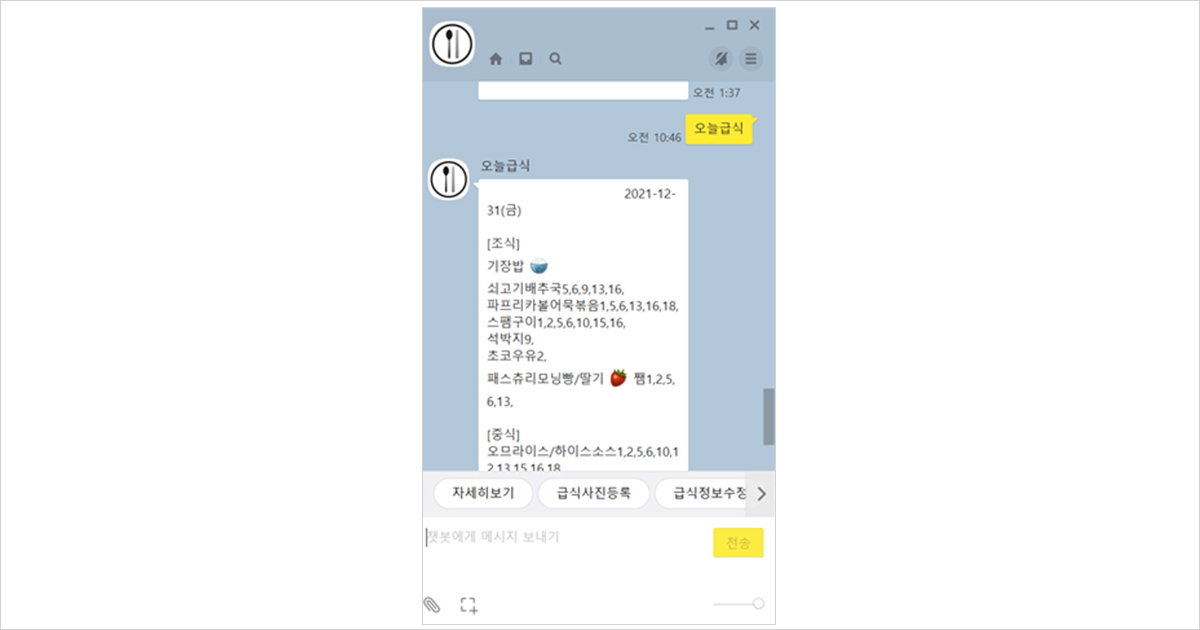 그림 1. 급식 챗봇 “오늘급식”