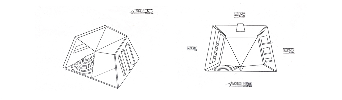 사이트 답사를 한 뒤 학생들은 각자 자신의 컨셉을 구상하고, 각자 다양한 방법으로 자신의 생각들을 확장해 나갑니다. 이때, 학생들이 가장 많이 사용하는 방법이 바로 스케치입니다. 건축학과는 공과대학에서 독보적으로 그림을 많이 그리는 학과로서, 학교를 다니는 동안 수많은 도면들과 다이어그램2 들을 그리게 됩니다. 자신의 생각을 가장 쉽고 명확하게 표현할 수 있는 방법이 스케치인 만큼 교수님들이 수업을 통해 스케치에 대한 노하우를 많이 알려주십니다.
