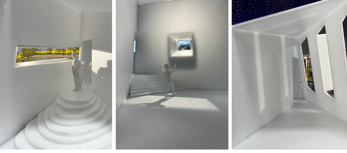 스케치와 도면의 구상이 끝나면, 더 효율적인 방법으로 공간을 표현하기 위해 다양한 디자인 툴을 사용하게 됩니다. 그 중 가장 대표적인 것이 3D 디자인 툴인 ‘Rhino3D’ 프로그램입니다. 3D 디자인 툴과 렌더링 툴을 사용해서 최대한 현실과 가깝게 공간을 구현해내고, 설계를 발전시키는 과정을 끊임없이 거칩니다.