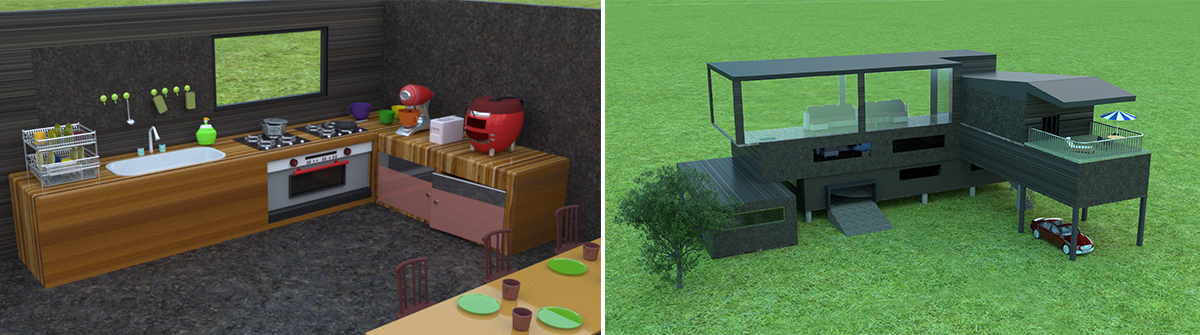 그림 9. 렌더링한 부엌과 집 모습