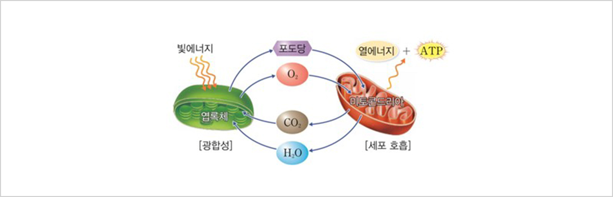 그림 1. 광합성과 세포 호흡에 관여하는 포도당
