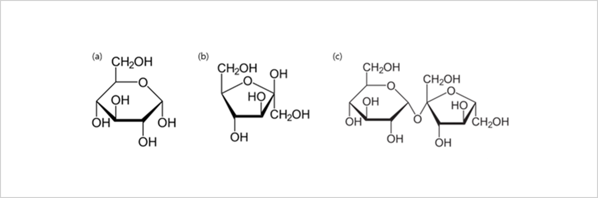 그림 3. 포도당, 과당, 설탕의 분자 구조식