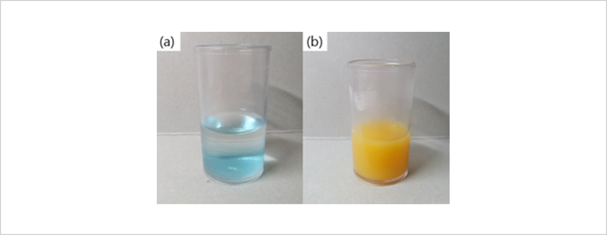 그림 7. (a) 베네딕트 용액을 첨가한 포도즙 (b) 베네딕트 용액을 첨가하고 가열한 포도즙