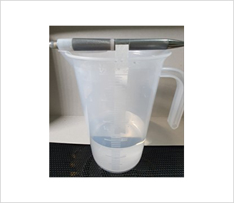 이후 여과지를 [그림 9]와 같이 수직으로 세워 끝을 물에 담가 줍니다. 물이 여과지를 따라 흡수되도록 15분간 둔 후, 여과지를 꺼내 다시 말려 줍니다.