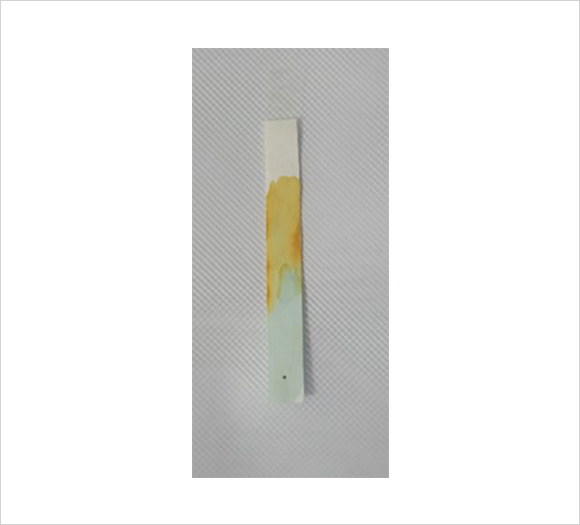 [그림 10]에서 단당류와 타 물질의 이동 속도 차이로 인해 여과지의 위쪽 부분만이 노란색을 띠는 것을 볼 수 있습니다.
