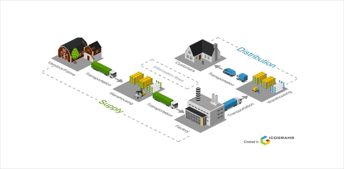 이렇게 제품이 원산지에서 소비자에게 오기까지의 전 과정을 마치 그물과 비슷하다는 의미로 ‘공급망’이라고 합니다.