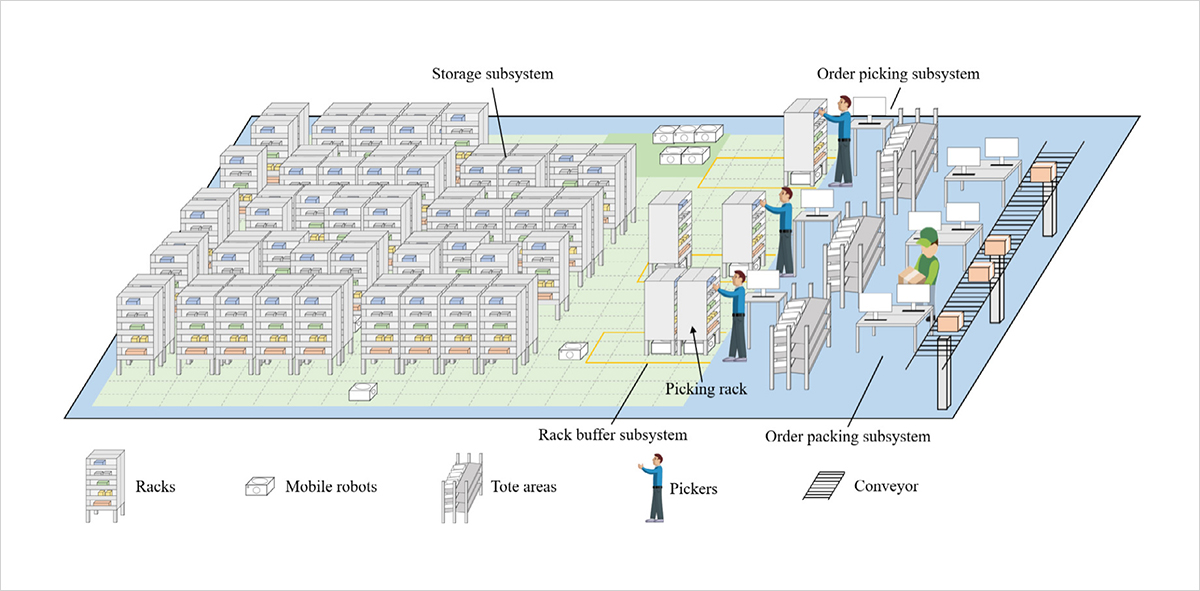- 그림 5. Zhuang, Yanling et al. “Order picking optimization with rack-moving mobile robots and multiple workstations.” European Journal of Operational Research 300 (2022): 527-544.