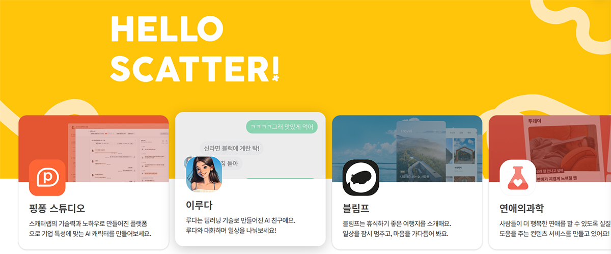 그림 1 스캐터랩 홈페이지 화면