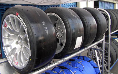또한 접지력을 극대화하기 위해서, 레이싱 차량에는 '슬릭 타이어'라는 특별한 타이어가 사용됩니다. 일반적으로 우리가 도로에서 마주치는 자동차의 타이어에는 표면에 '트레드'라 불리는 가로, 세로 홈이 있는데요. 슬릭 타이어는 표면이 이러한 트레드 없이 매끈하고, 타이어와 지면 간 마찰력, 접지력이 훨씬 큽니다. 이 때문에 더 높은 속도로 서킷을 달릴 수 있습니다. 하지만 타이어의 마모 속도가 빠른 데다, 무엇보다 빗물이 타이어 사이로 빠져나갈 틈이 없어 우천 시에 사용하면 오히려 매우 미끄러우며 위험하다는 한계가 있습니다.