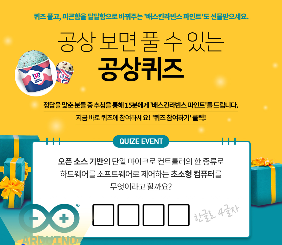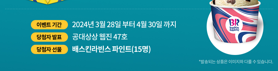 정답을 맞춘 분들 중 추첨을 통해 15분에게 '배스킨라빈스 파인트'를 드립니다.