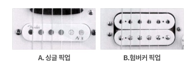 싱글 픽업의 경우에는 줄마다 하나의 코일만을 사용하는데, 이는 외부 자기장의 변화에 민감하다는 단점이 있어요. 픽업은 기타 줄의 진동으로 인한 자기장의 변화만 전기 신호로 변환해야 하는데, 외부 자기장의 변화에 의해서도 전기 신호가 만들어질 수 있기 때문에 잡음이 들리기도 합니다.
