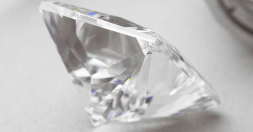 먼저 다이아몬드에 이름표를 달 수 있을까요? 애초에 빛나는 장신구로 사용되는 보석에 무언가를 새기는 것이 괜찮을까요? 공학자들은 이름표를 아주 작게 만드는 방식을 택했습니다. 레이저 각인 방법은 위의 그림과 같이 고정밀 레이저 장비로 다이아의 옆면에 약 0.1㎜ 크기로 출처 정보를 각인합니다. 이를 통해 품질에 영향을 주지 않고 다이아의 출처를 표기할 수 있죠.