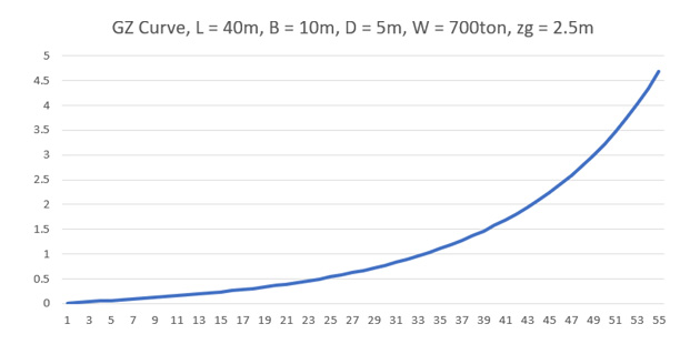 수업에서는 이렇게 이론적인 내용에서 그치지 않고, 실제 시뮬레이션을 통해 GZ curve를 확인해 봅니다. GZ curve는 배의 기울어진 각도 ϕ에 대한 GZ 값의 관계를 나타내는 곡선인데요, 학생들은 직접 C#과 같은 프로그래밍 언어를 활용해 시뮬레이션 프로그램을 설계함으로써 GZ curve를 잘 계산할 수 있는 '설계 프로그램'을 만드는 프로젝트를 진행하게 됩니다.
