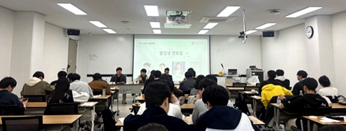 점심 시간에는 다양한 진로를 걷고 계신 선배들과 함께 식사하며 자유롭게 이야기를 나누는 시간이 마련되었습니다. 각자의 분야에서 활약 중인 선배님들께서 직접 들려주는 생생한 경험담은 무엇보다도 값진 배움이었는데요. "혼자 공부하지 말고, 함께 공부하라"는 따뜻한 조언부터, 연구실 생활과 대학원 진학을 고민할 때 참고할 현실적인 팁, 그리고 학부 졸업 후 바로 취업한 선배들의 이야기까지! 공대생으로서 앞으로 나아갈 길이 정말 다양하다는 것을 실감할 수 있었습니다. 예를 들어, 한 선배는 학부 졸업 후 대기업에 입사해 실무를 경험한 뒤, 자신이 어떤 역량에 강점이 있는지를 알 수 있었다고 하셨고, 또 다른 선배는 대학원 진학 전 인턴 연구를 통해 '연구가 자신의 성향에 맞는지'를 충분히 고민해보는 것이 중요하다고 강조하셨습니다.