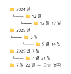 예를 들어 오늘이 2025년 7월 22일이라고 할 때, 제가 원하는 폴더 구조는 위 그림과 같습니다.